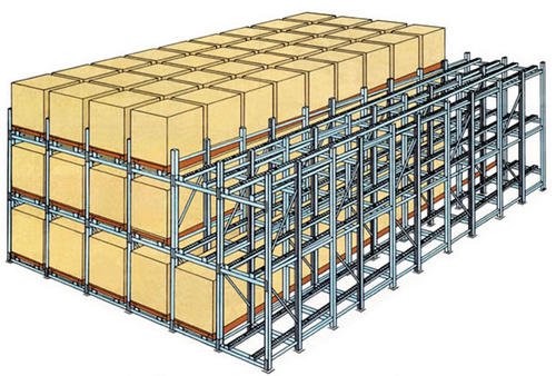 重力式货架属于仓储货架中的托盘类存储货架。重力式货架采用的是先进先出的存储方式,货架深度及层数可按需而定。重力式货架适用于少品种大批量同类货物的存储。工作原理编辑重力式货架又叫辊道式货架,属于仓储货架中的托盘类存储货架。重力式货架是横梁式货架衍生品之一,货架结构与横梁式货架相似,只是在横梁上安上滚筒式轨道,轨道呈3-5°倾斜。托盘货物用叉车搬运至货架进货口,利用自重,托盘从进口自动滑行至另一端的取货口。重力式货架属于先进先出的存储方式。货架特点编辑1、货物由高的一端存入,滑至低端,从低端取出。货物滑动过程中,滑道上设置有阻尼器,控制货物滑行速度保持在安全范围内。滑道出货一端设置有分离器,搬运机械可顺利取出板位置的货物。2、货物遵循先进先出顺序。货架具有存储密度高,且具有柔性配合功能。3、适用于以托盘为载体的存储作业,货物堆栈整齐,为大件重物的存储提供了较好的解决方案,仓储空间利用率在75%以上,而且只需要一个进出货通道;4、重力式货架非常环保,全部采用无动力形式,无能耗,噪音低,安全可靠,可满负荷运作。在货架的组与组之间没有作业通道,从而增加了60%的空间利用率,提高了仓储的容积率;托盘操作遵循先进先出的原则;自动储存回转;储存和拣选两个动作的分开大大提高输出量,由于是自重力使货物滑动,而且没有操作通道,所以减少了运输路线和叉车的数量